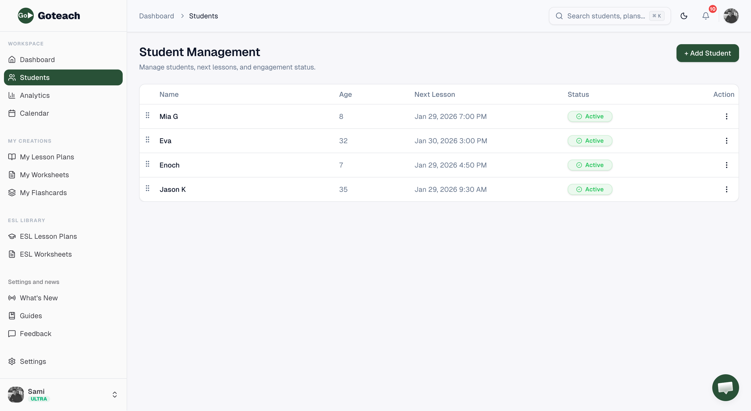 Stop juggling spreadsheets, calendars, and notes. GoTeach keeps your student records, schedules, and business data in one centralized, secure location.
